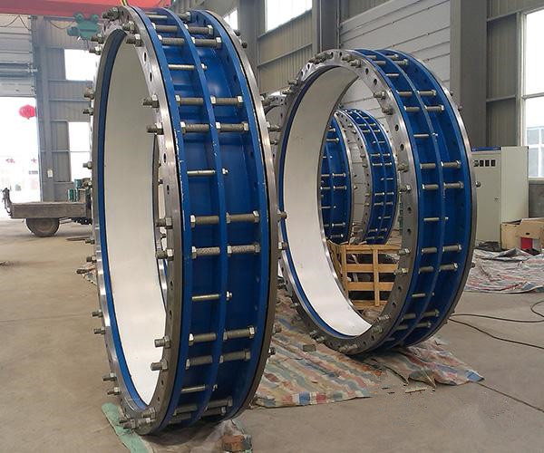松套傳力接頭安裝在管道之后,扭緊螺帽延展性密封環,在螺帽旋蓋的功效下互相傾斜度,壓緊在管道外側起密封性和聯接功效。當溫度轉變 時管道能在連接頭正中間的伸縮,當地基下沉,管道能偏斜,并保證 密封性沒有滲漏,進而具有全自動賠償目地。